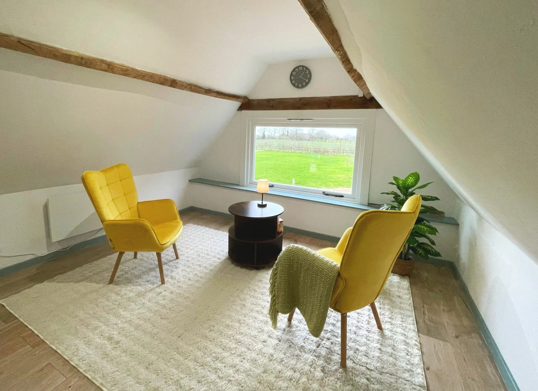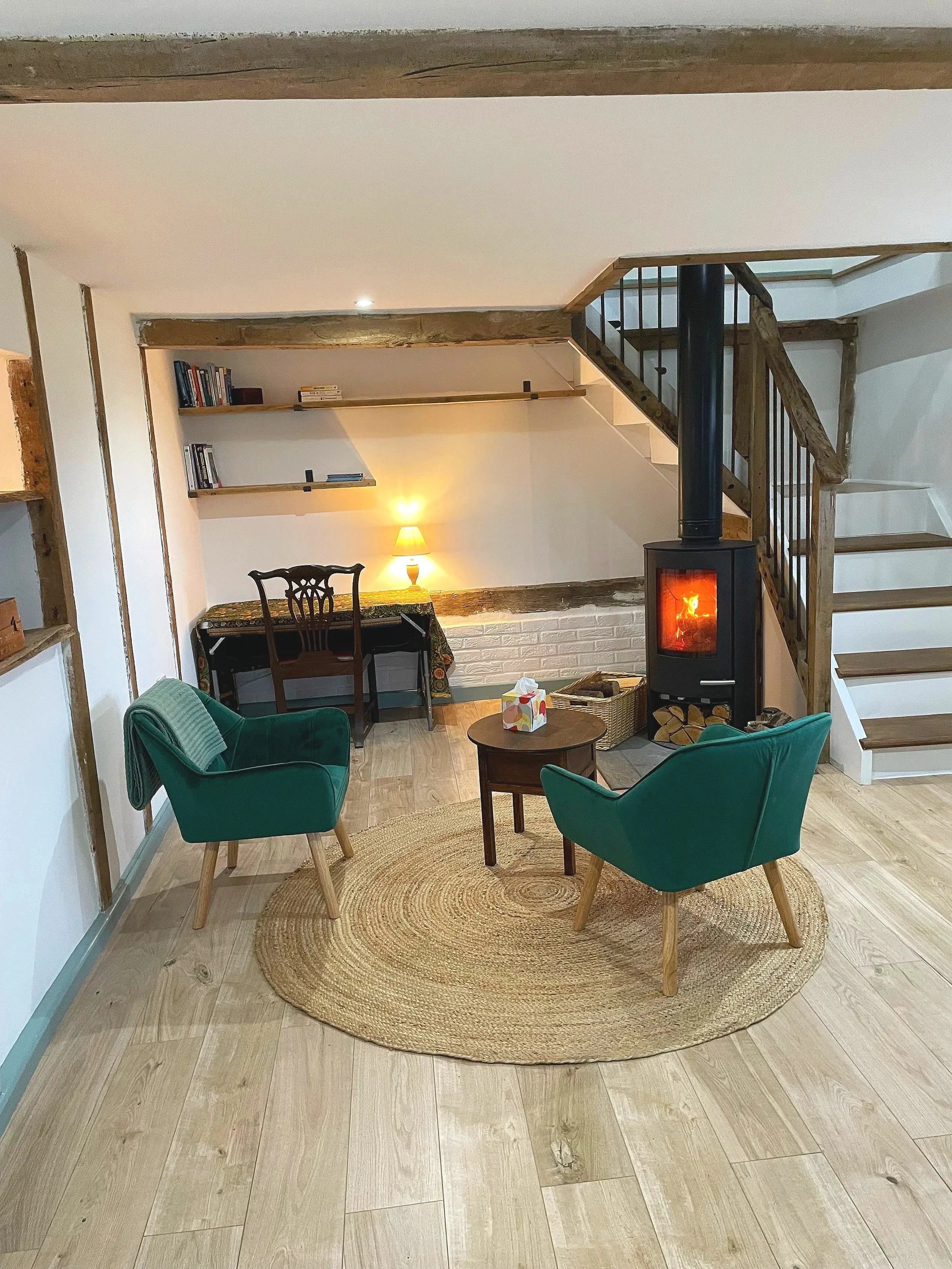 A choice of two therapy spaces for face to face appointments are available inside the quiet comfort of The Listening Barn, with an option to ‘walk and talk’ outside in the peaceful natural surroundings.